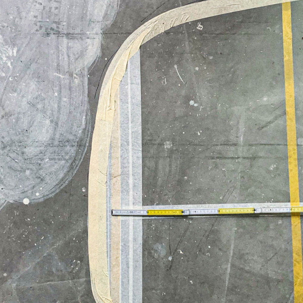 the design process began by mapping out the overall shape of the table within the client's living space.