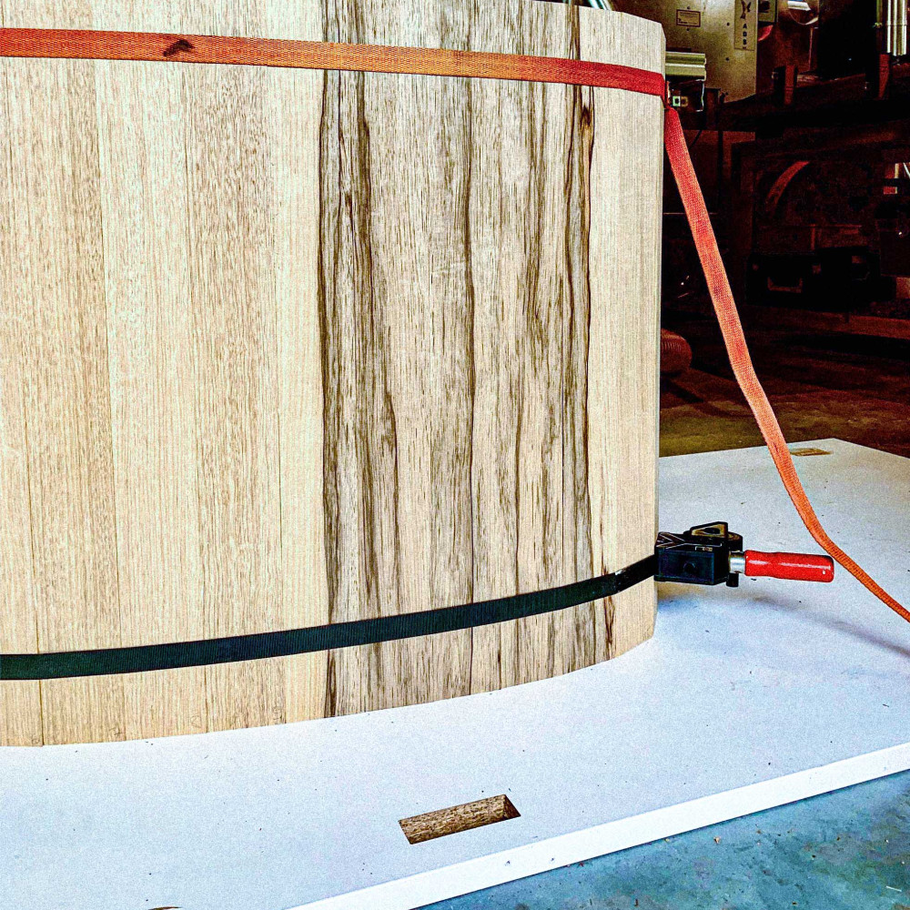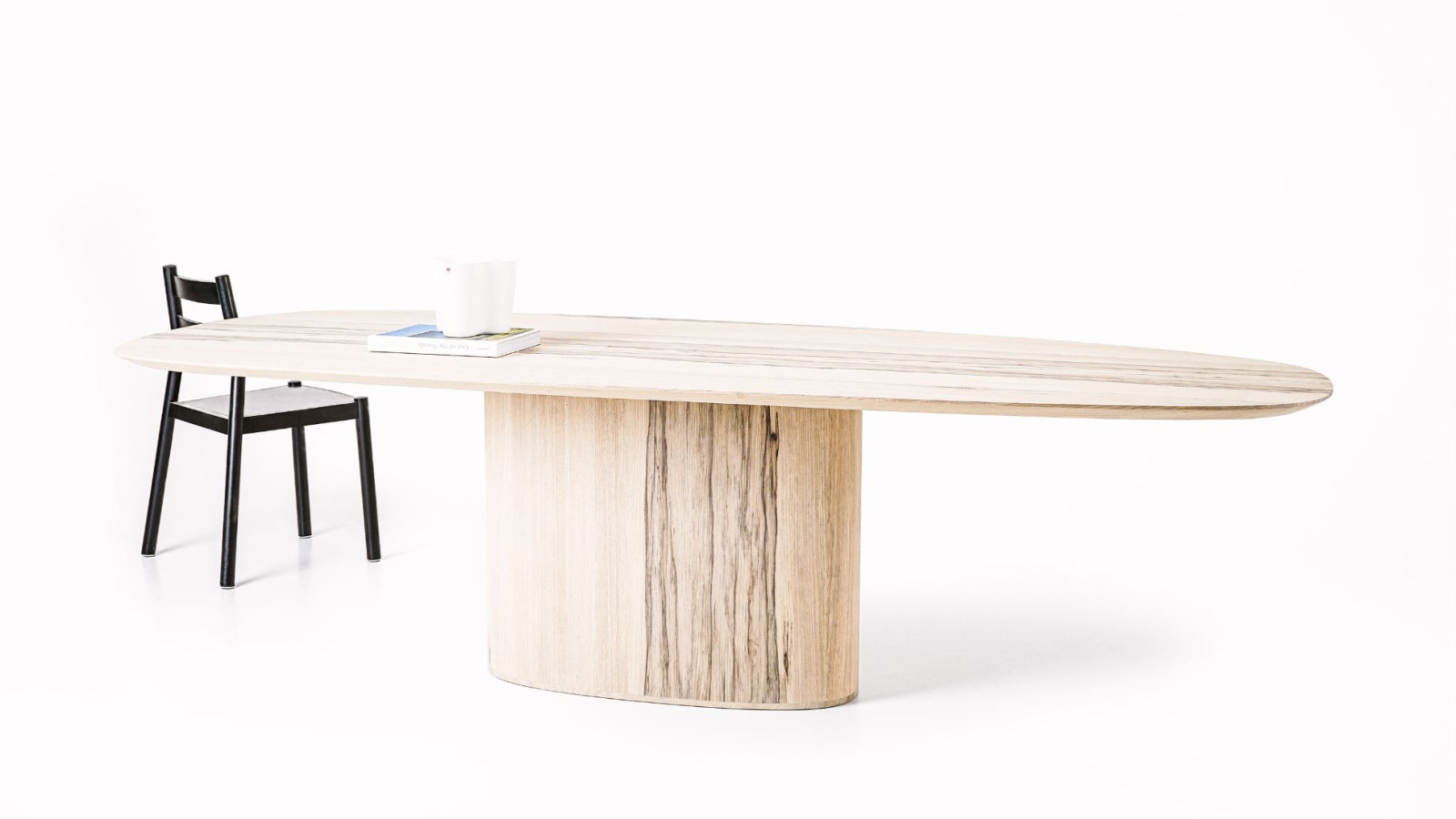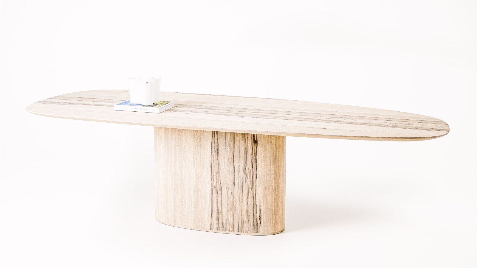 a plinth base was designed to follow the organic shape of the tabletop, requiring an interesting approach to realise.
