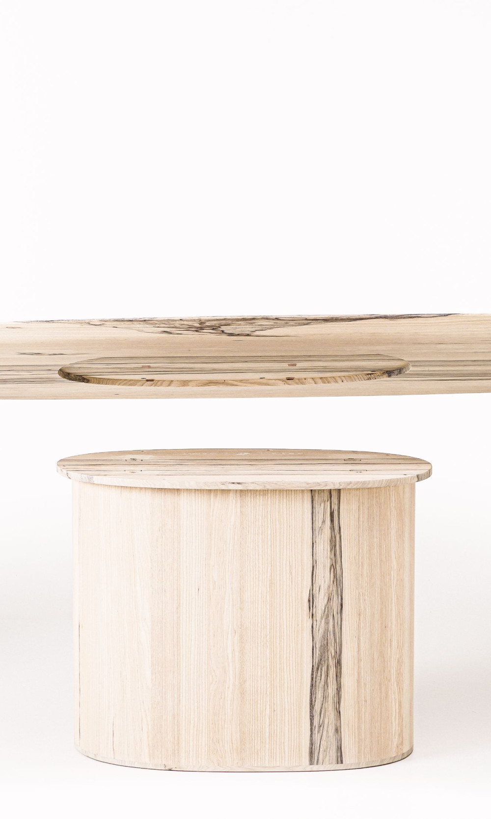through carefully deciding the grain direction, it became as if the table and base house their own tree within.