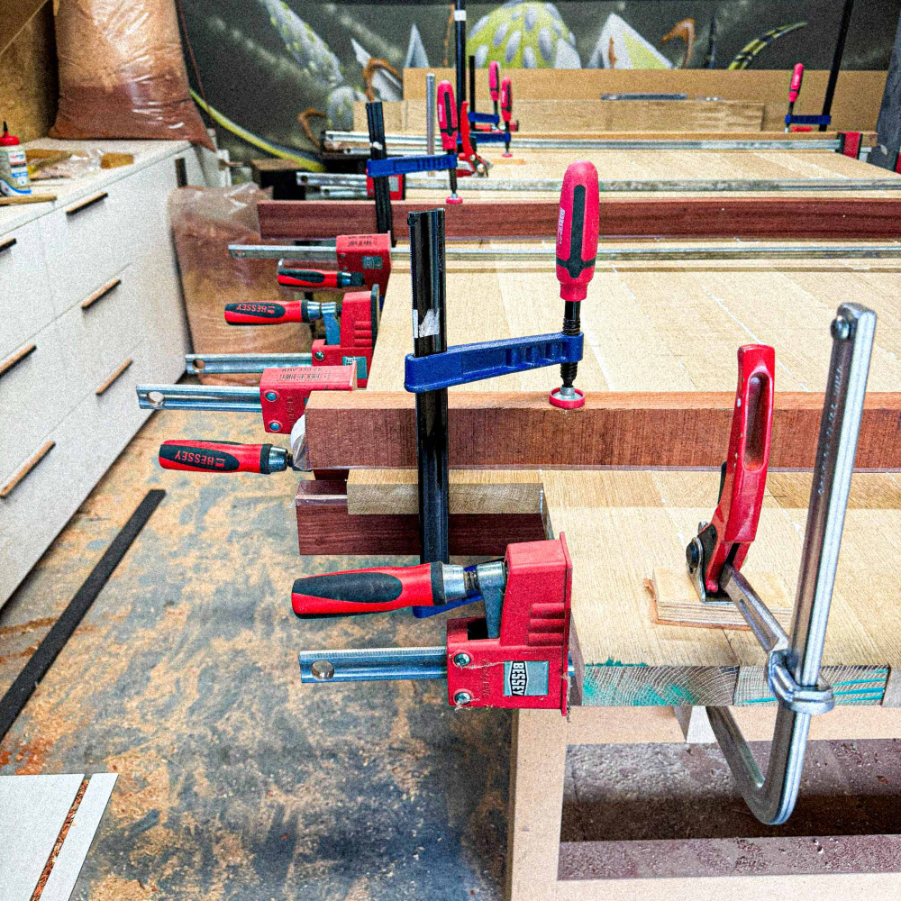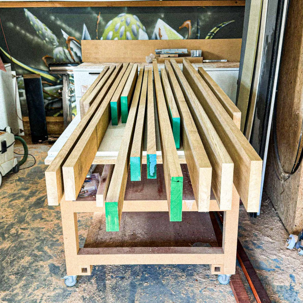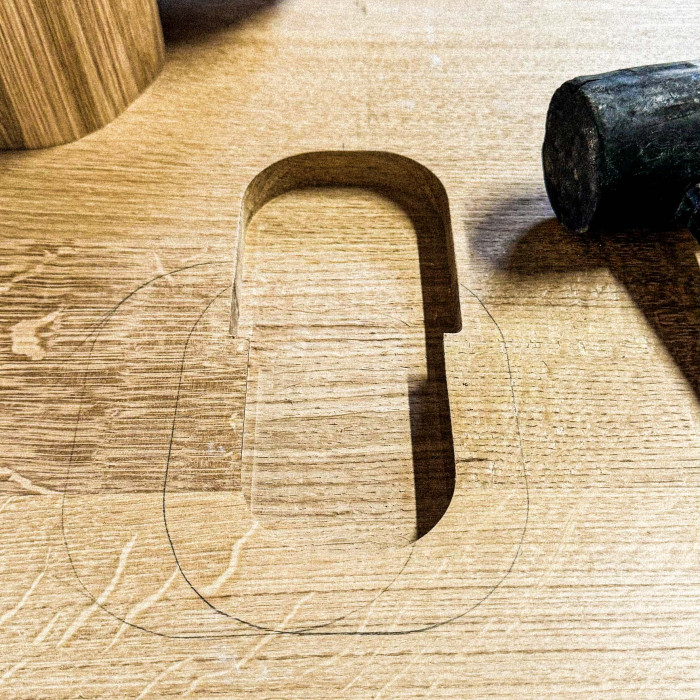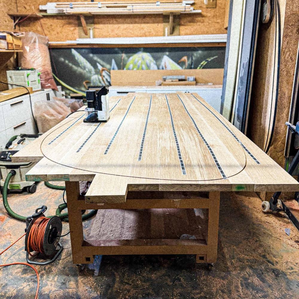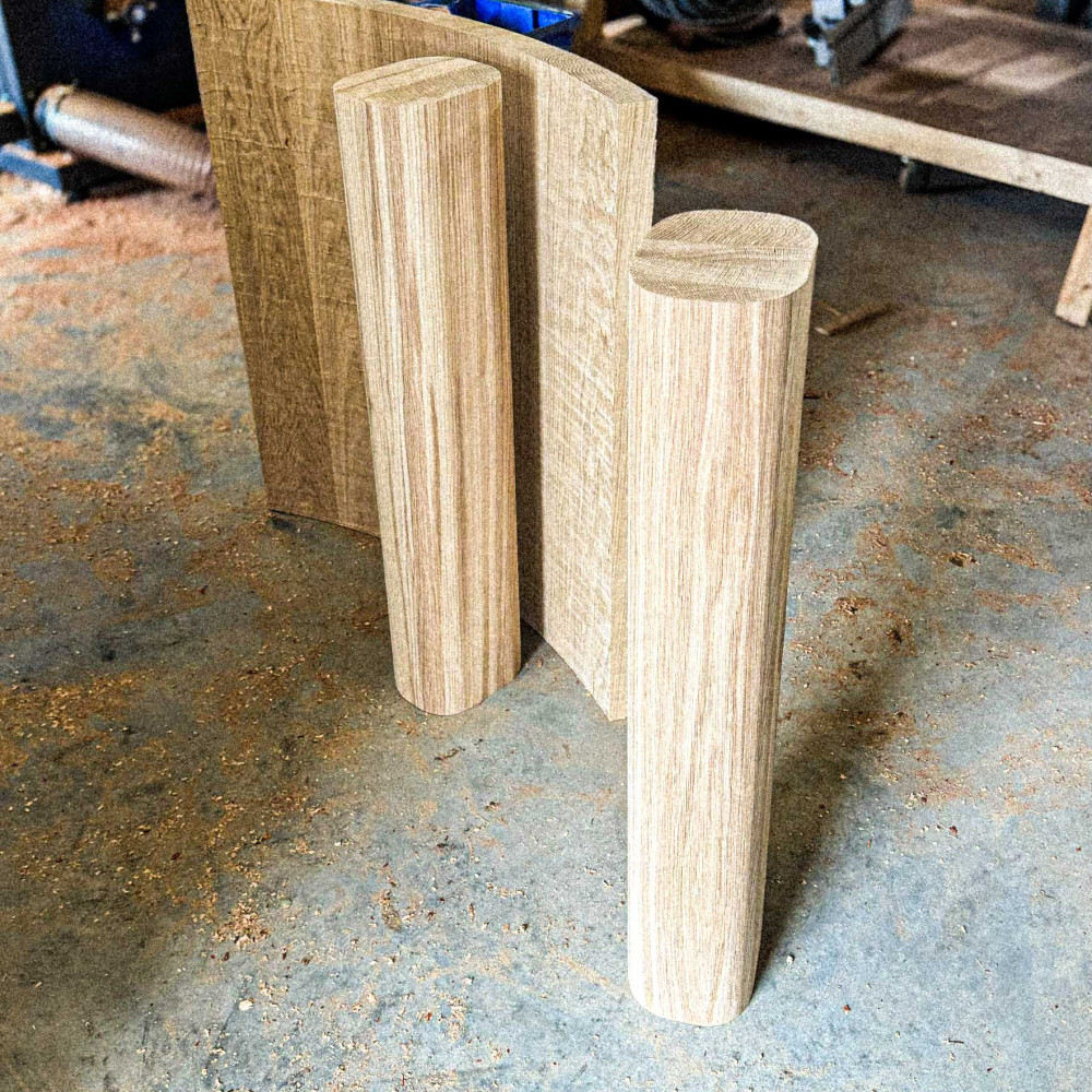 since the destination for this moment was found on the first floor, only accesible through an outdoor stairs, an innovative connection between tabletop and legs was developed using oversized dovetail connections.