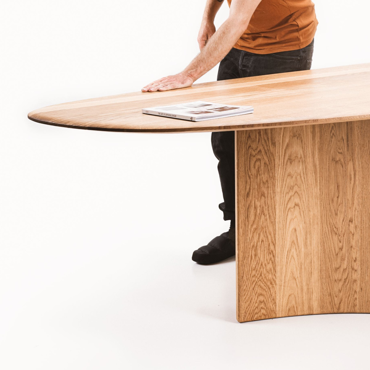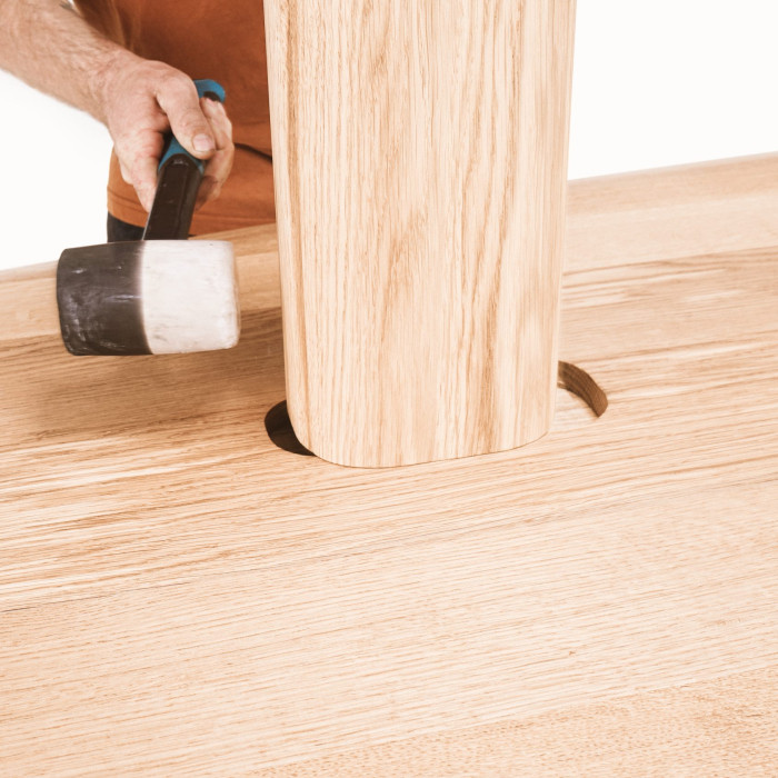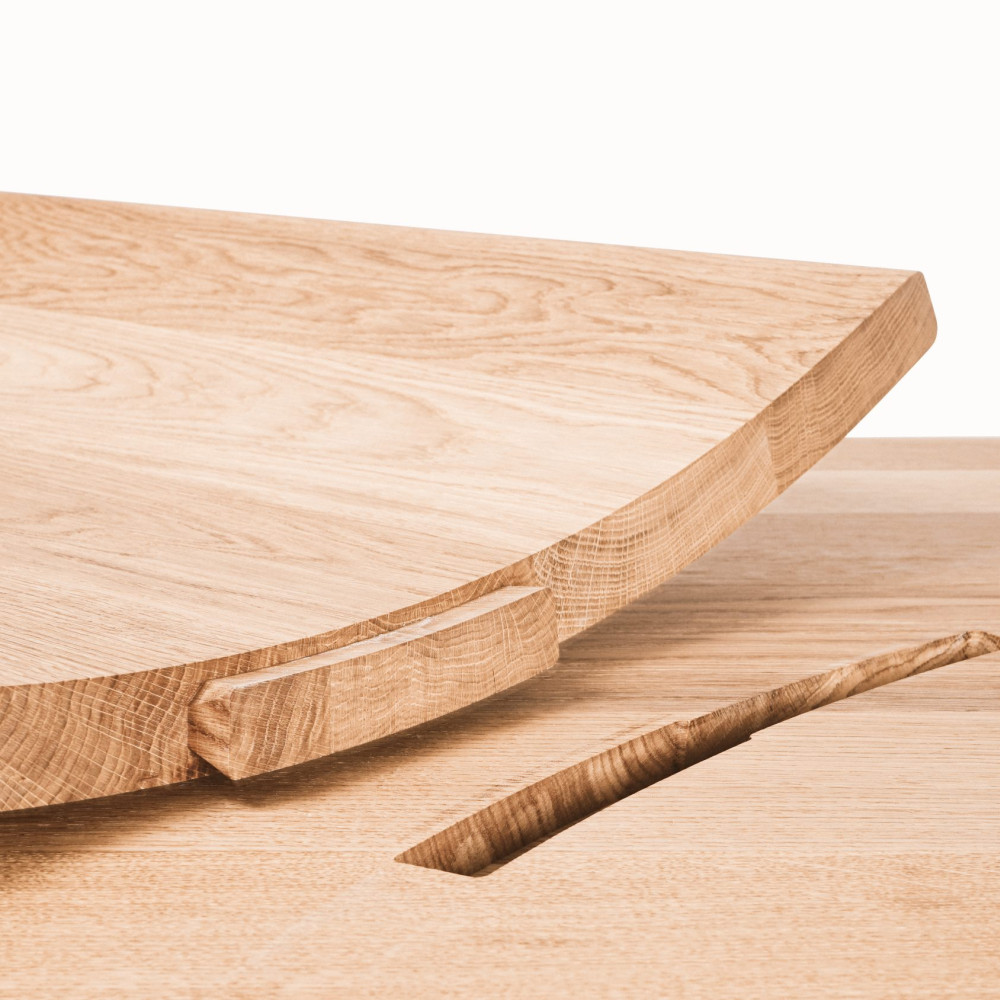 the connection between tabletop and legs is entirely glue- and screw-free, thanks to the dovetail joints holding them together.